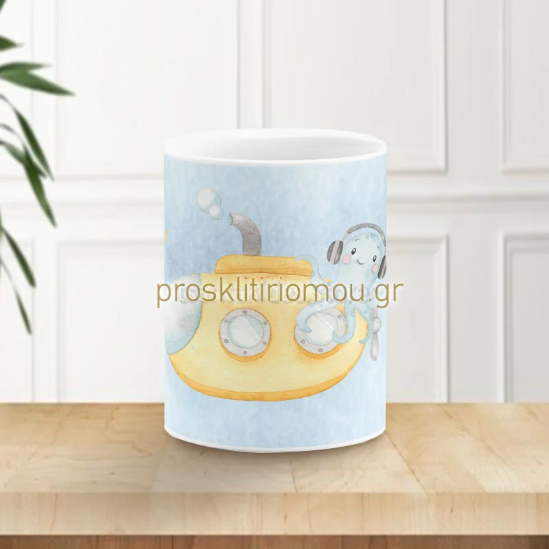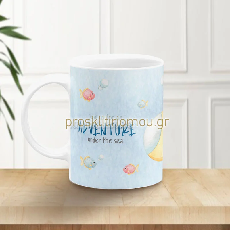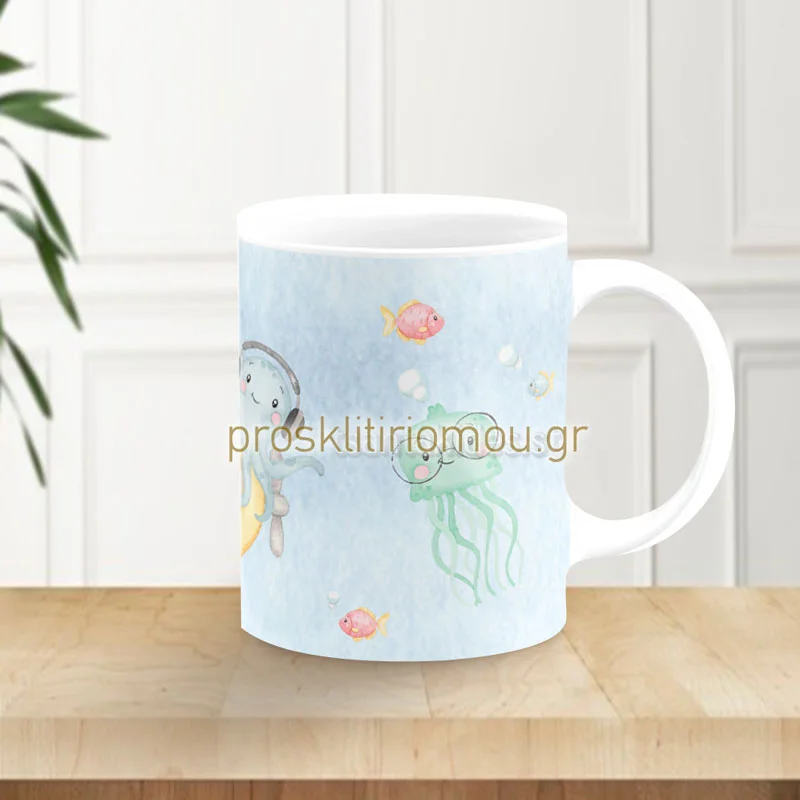 Μπομπονιέρα κούπα με θέμα το βυθό και 5 κουφέτα Crispies πολύχρωμα. Κεραμική κούπα εκτυπωμένη. Διάσταση: 9,5Χ8 cm. Eλάχιστη παραγγελία: 30 τεμάχια