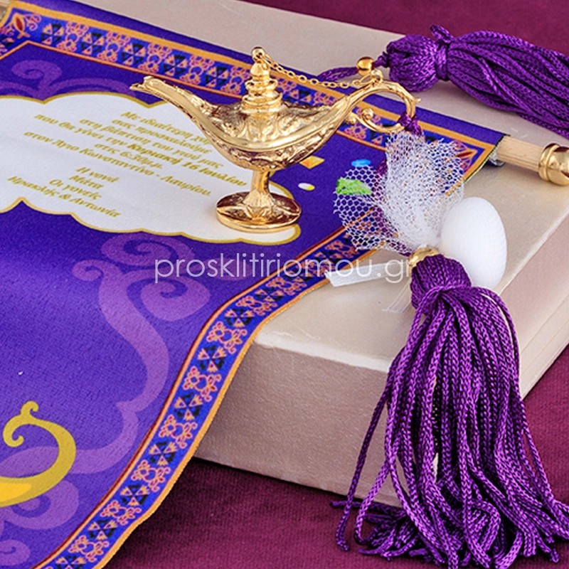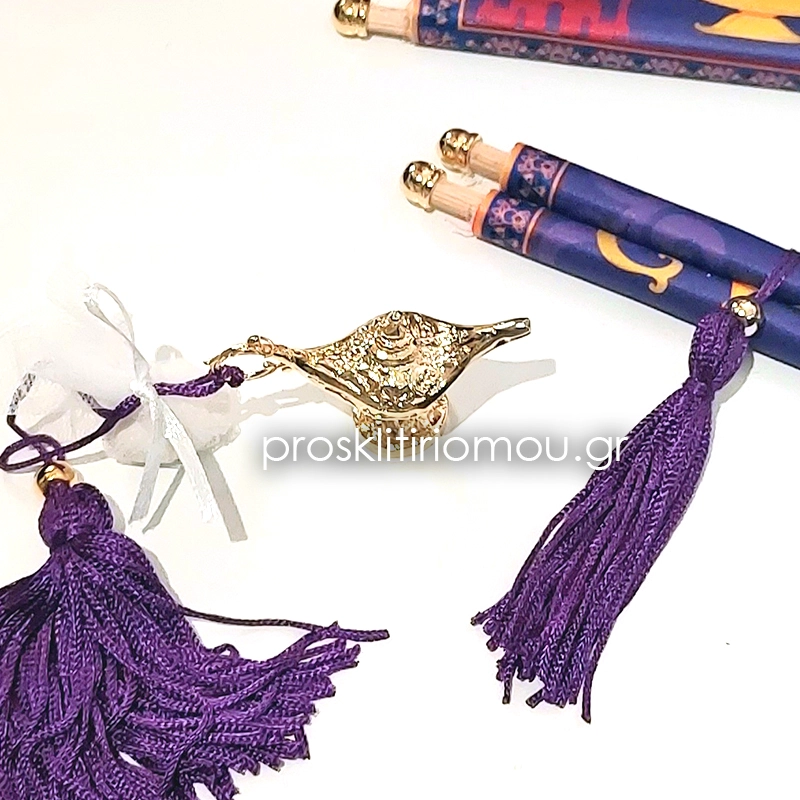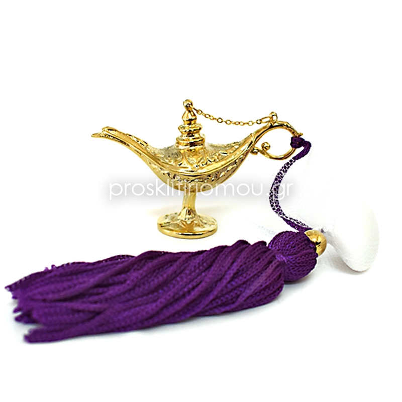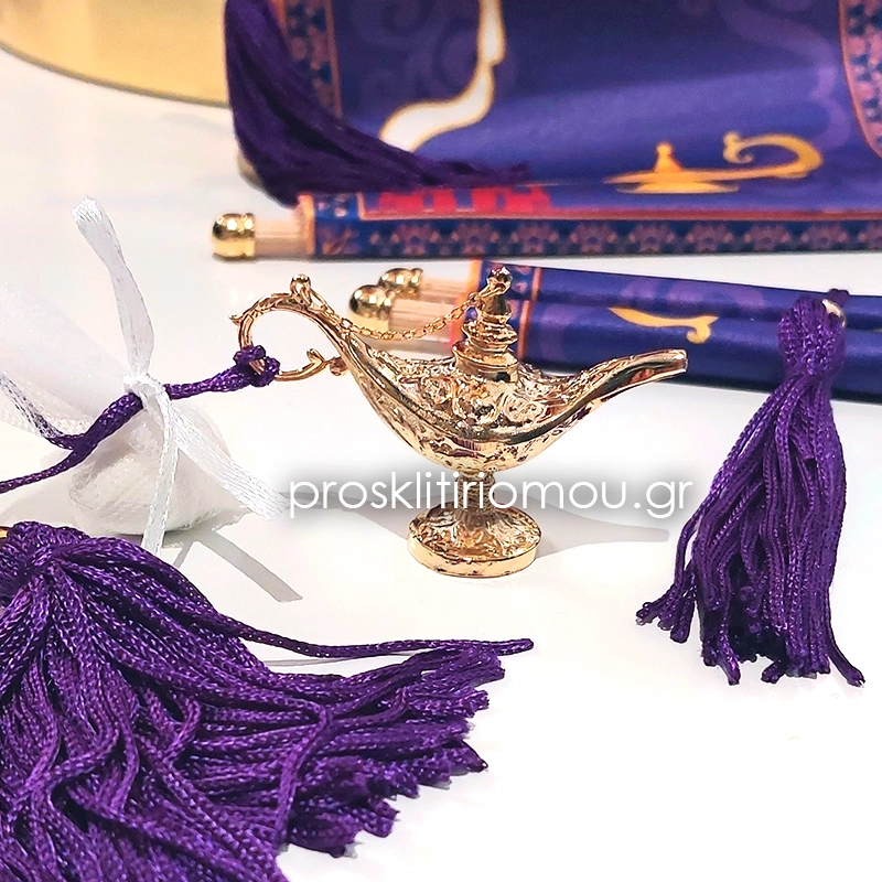 Luxury Μπομπονιερα λυχνάρι του Αλαντίν επιχρυσωμένο 24κ με φουντίτσα μωβ (θέμα Αλαντίν, Aladdin) . Διάσταση: 7χ5εκ.