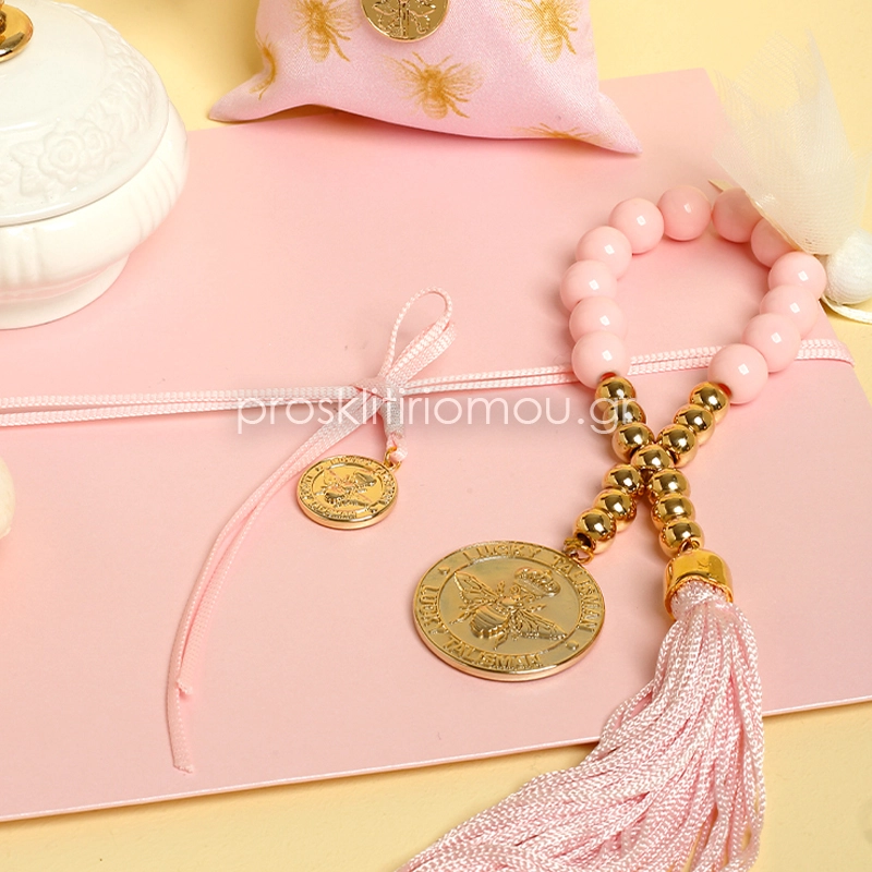 Luxury μπομπονιέρα μέλισσα επιχρυσωμένη 24κ., με χάντρες και φουντίτσα.