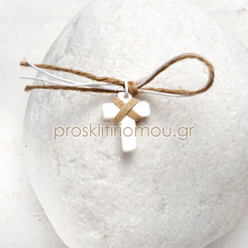 Μαρτυρικό με φίλντισι σταυρό λευκό και κορδόνι καφέ – 50 τεμάχια