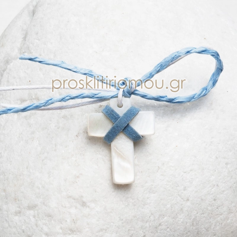 Μαρτυρικό με φίλντισι σταυρό λευκό και κορδόνι σιέλ.