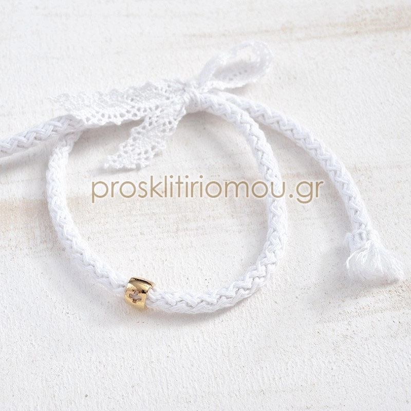 Μαρτυρικό βραχιόλι με κορδόνι πλεκτό λευκό και επίχρυσο σταυρουδάκι, δεμένο με δαντελίτσα λευκή. Η τιμή αναφέρεται στη συσκευασία των 50 τεμαχίων.