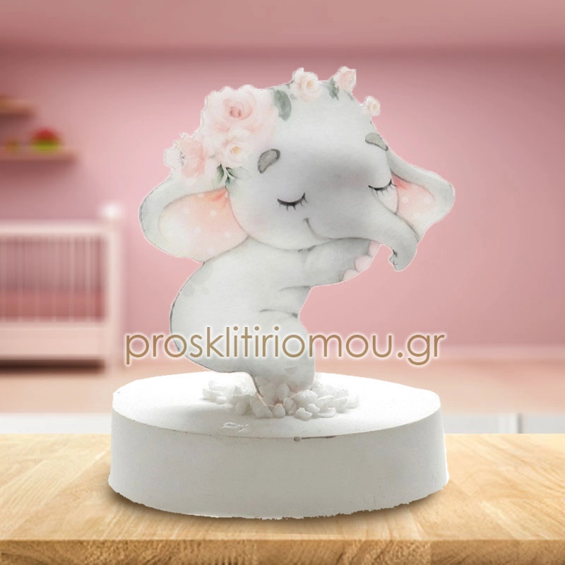 Μπομπονιέρα βαπτισης ροζ ελεφαντακι σε αρωματική βάση. Διάσταση: 8Χ10 εκ. Η τιμή αφορά ολοκληρωμένη μπομπονιέρα με 5 κουφέτα Χατζηγιαννακη. Ελάχιστη παραγγελία 50 τεμάχια.