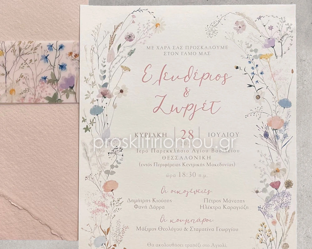 Διάσταση 16,5χ23 εκ. Ελάχιστη παραγγελία 50 προσκλητήρια. Η τιμή περιλαμβάνει την εκτύπωση.