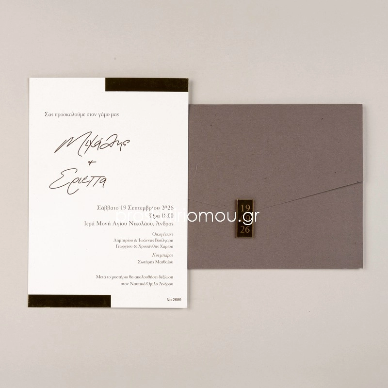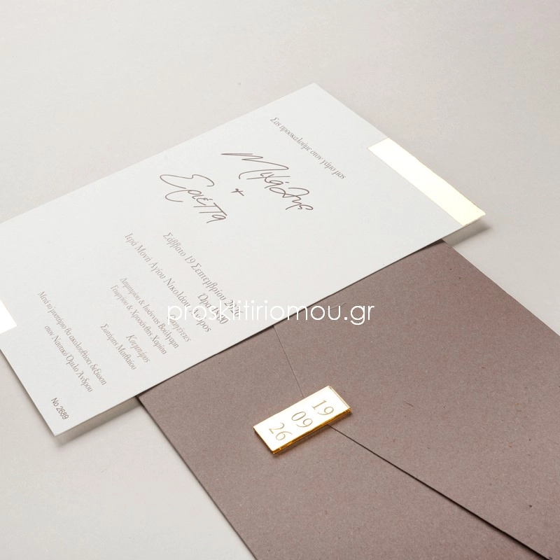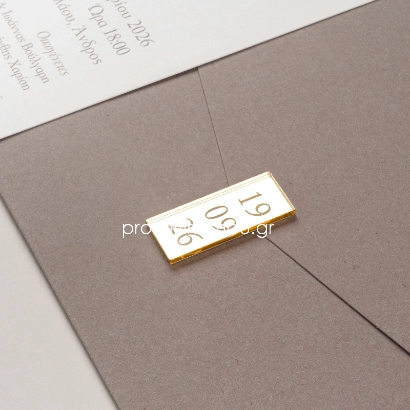 Η τιμή αφορά τα χαρτιά πρόσκλησης και φάκελο καθώε και την εκτύπωση χρυσοτυπίας στο προσκλητήριο. Η τιμή δεν περιλαμβάνει εκτύπωση κειμένου πρόσκλησης & βουλοκέρι plexi glass (βλ. επιπρόσθετα).