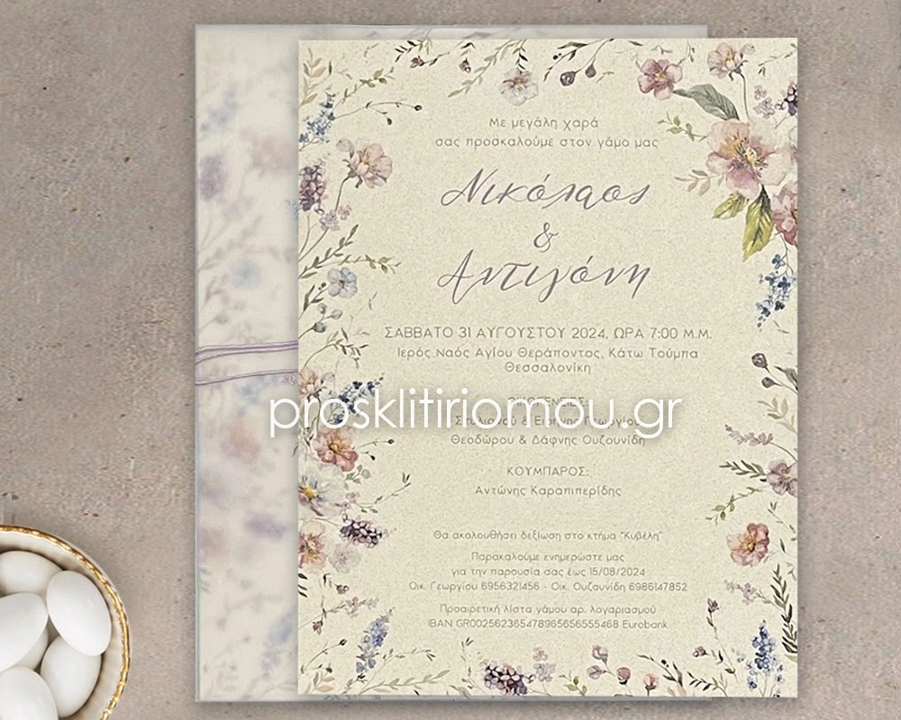Διάσταση 14,5χ19,5 εκ. Ελάχιστη παραγγελία 50 προσκλητήρια.